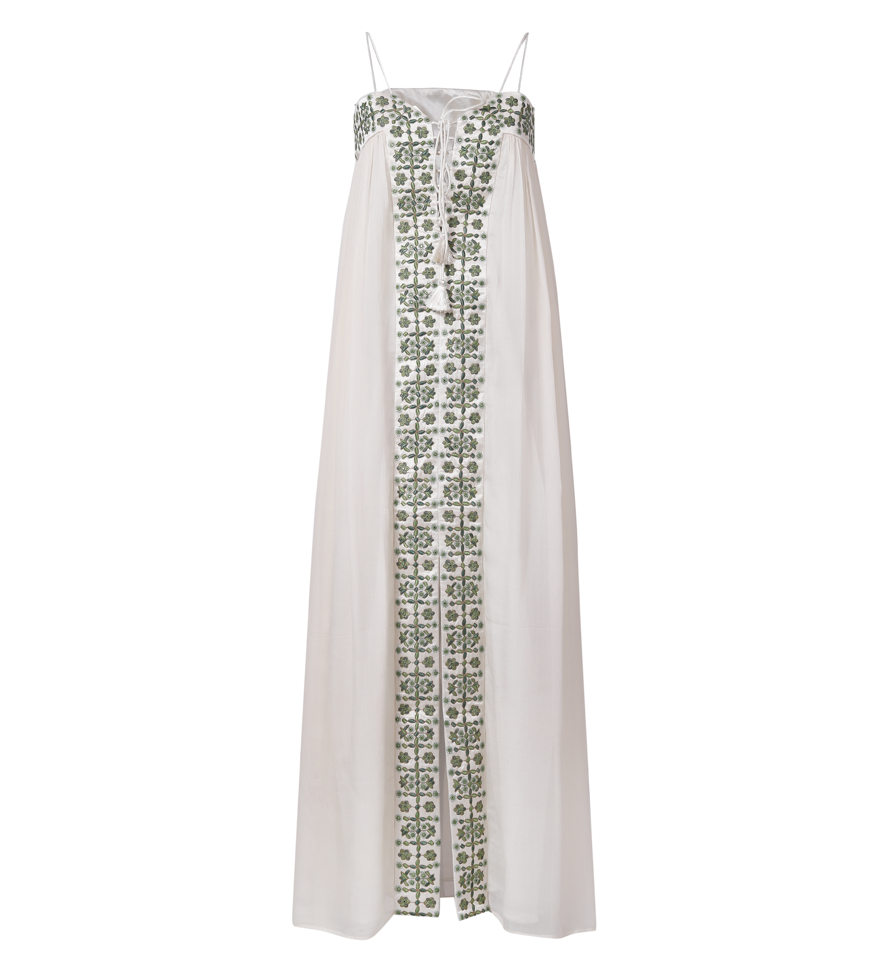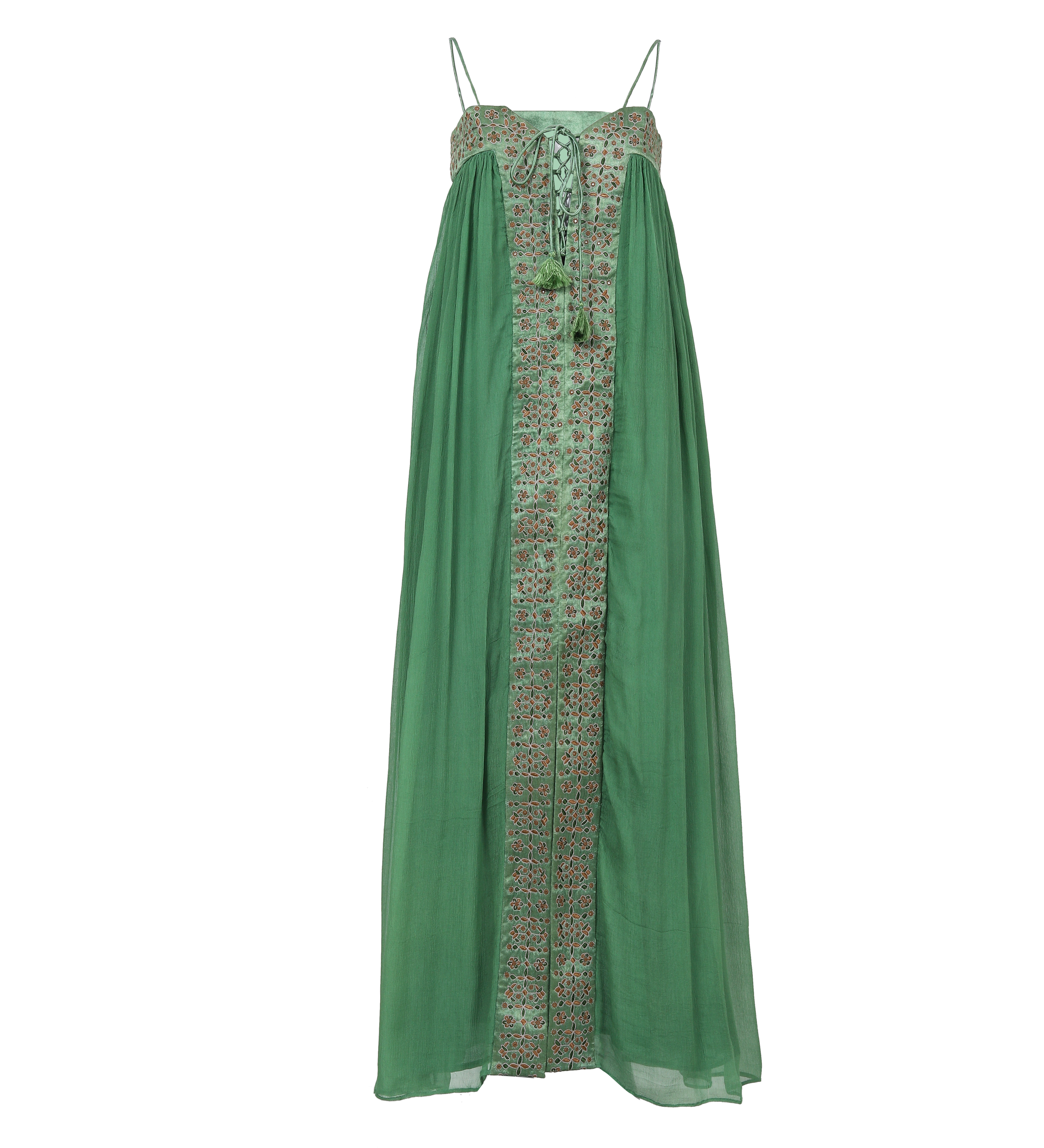 DELFINA WITH PAKKO EMBROIDERY - EMERALD GOLDEN LEAVES