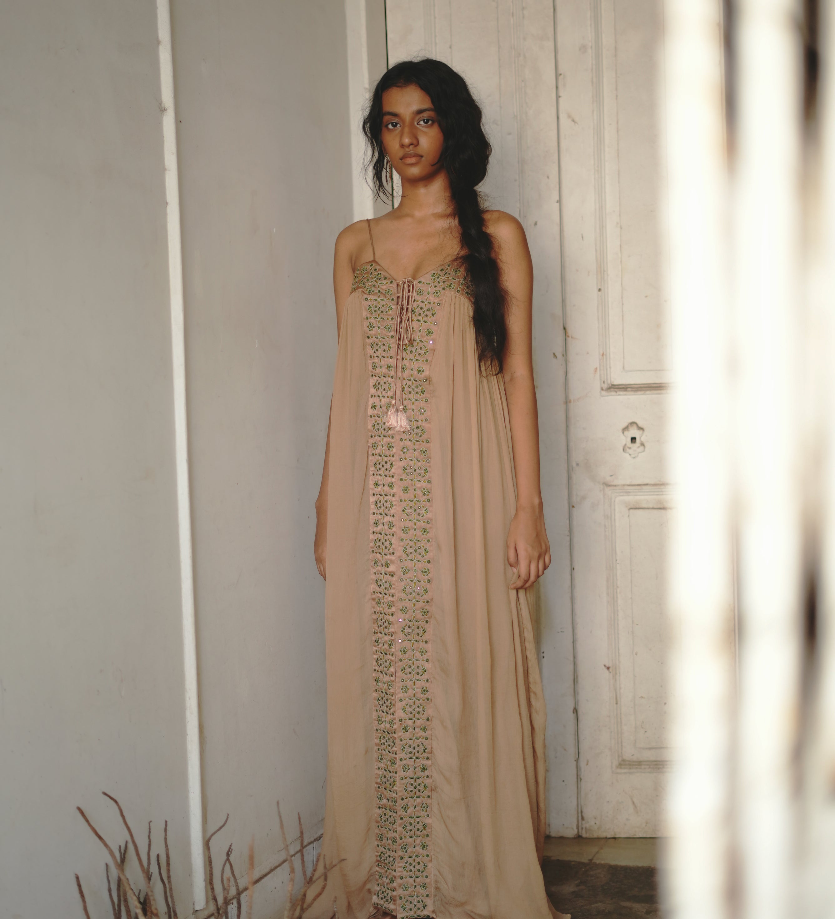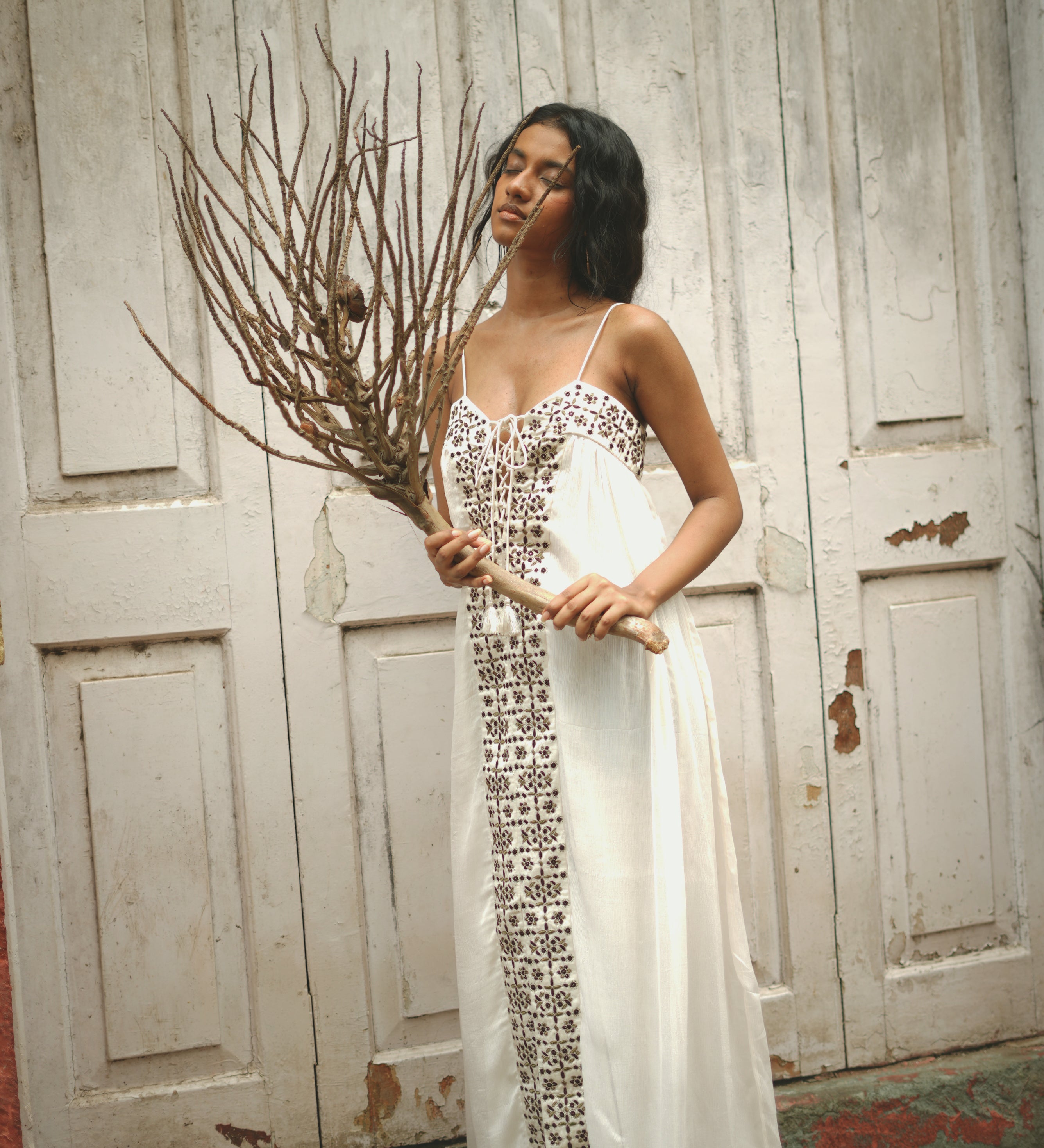 DELFINA WITH SINDHI EMBROIDERY - UNDYED/GOLD AND SILVER