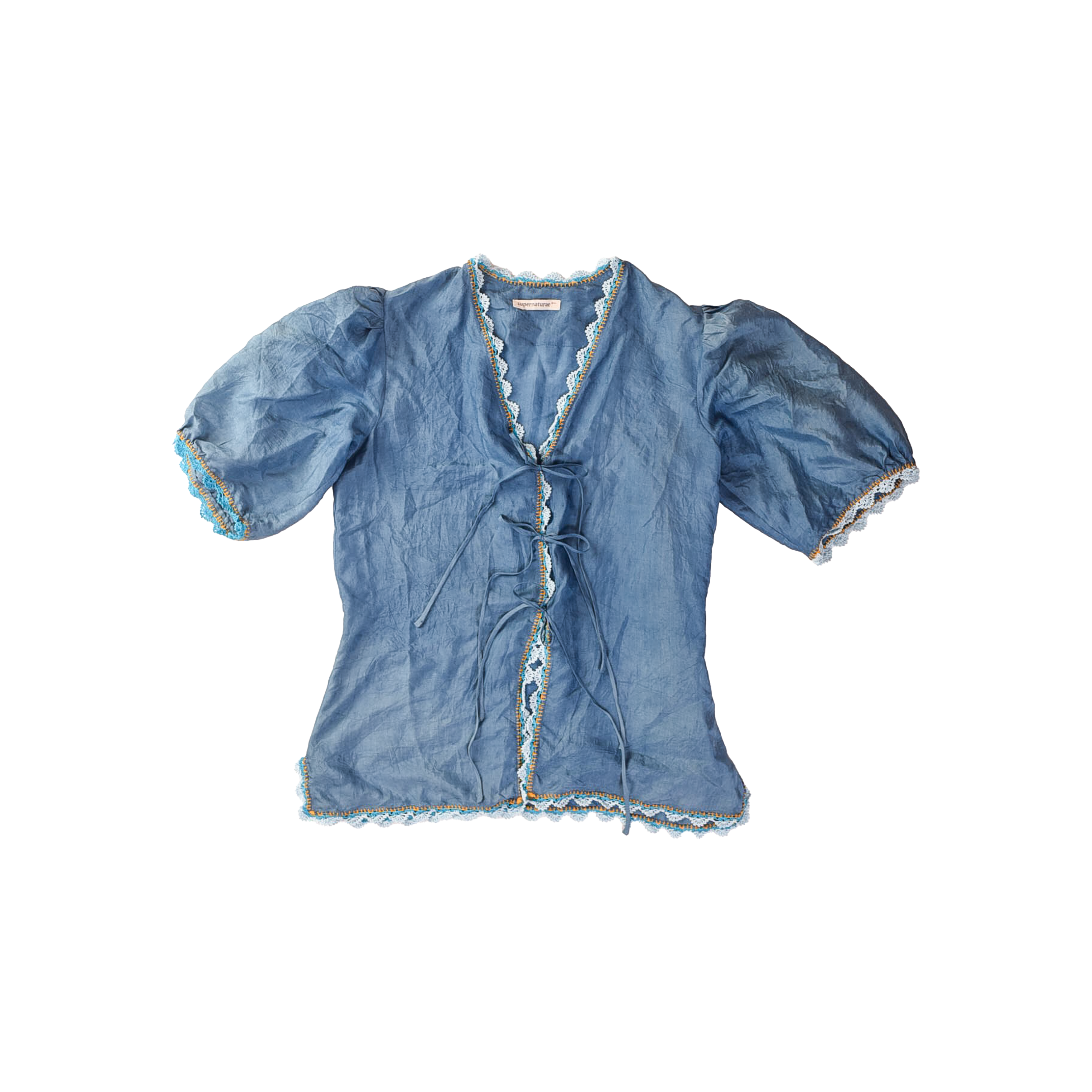 Made from handwoven silk, it offers a lightweight, breathable feel, perfect for warm-weather dressing. Finished with delicate crochet details, each blouse is a unique work of art.