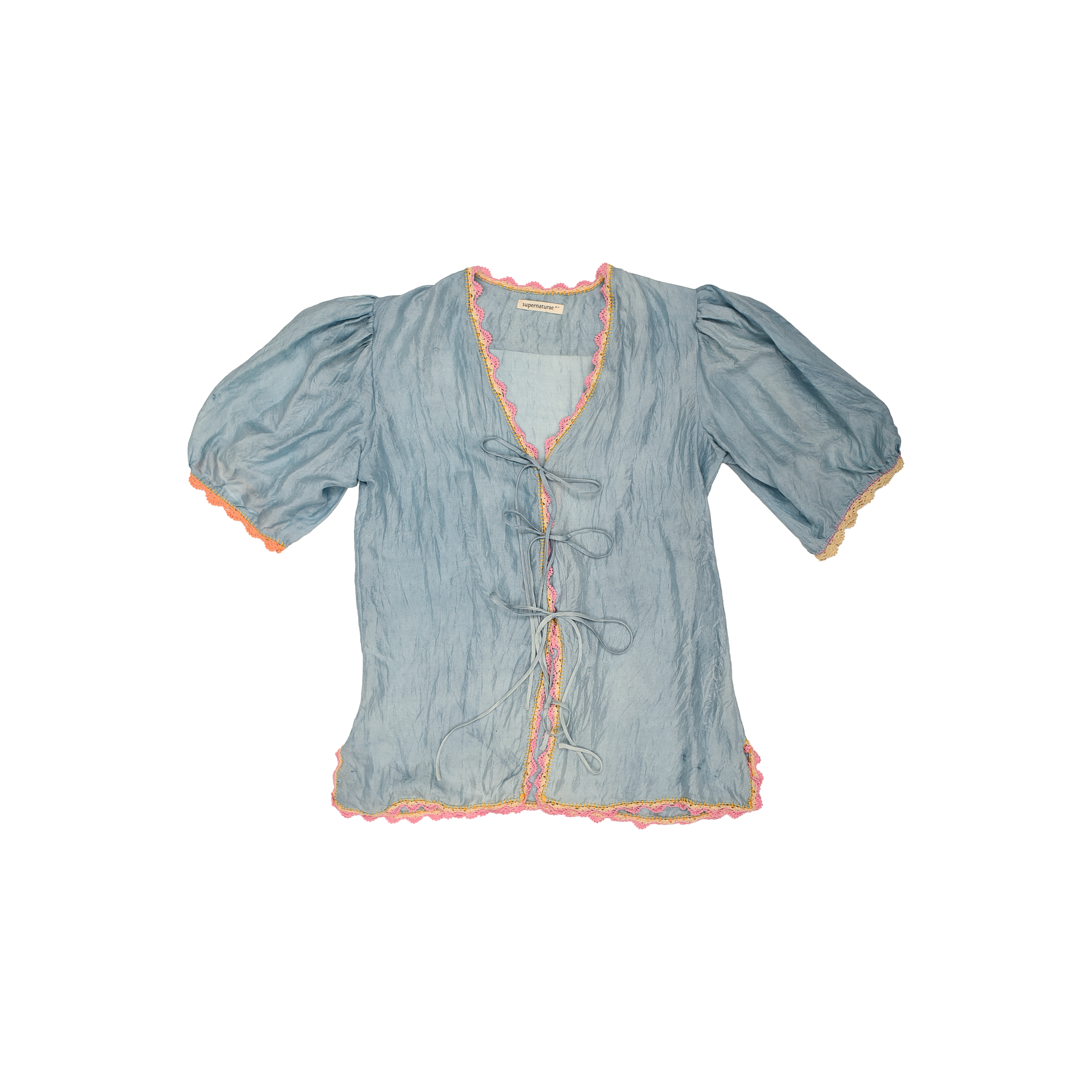 Made from handwoven silk, it offers a lightweight, breathable feel, perfect for warm-weather dressing. Finished with delicate crochet details, each blouse is a unique work of art.