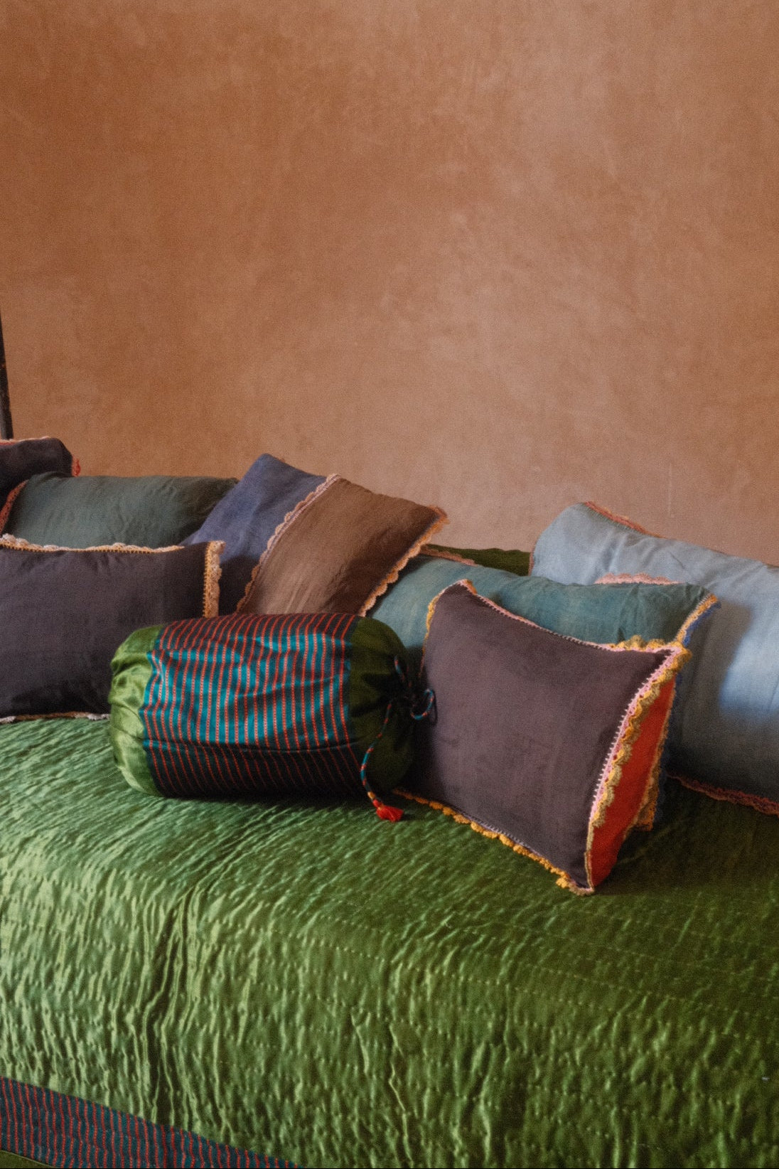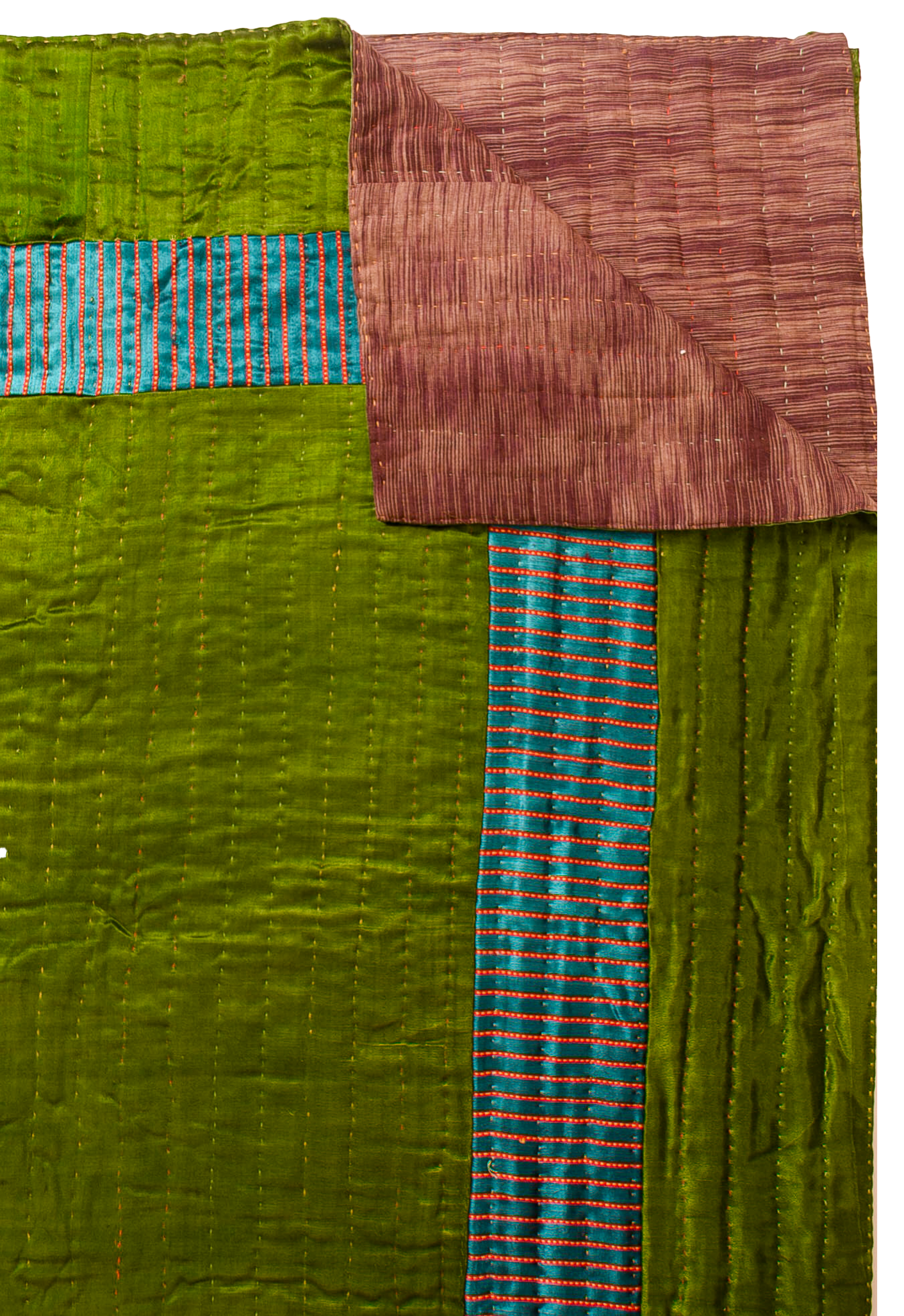 Aurelia is part of Supernaturae’s home line. One of a kind quilt made from mashru: a blend of silk and cotton with a satin finish.