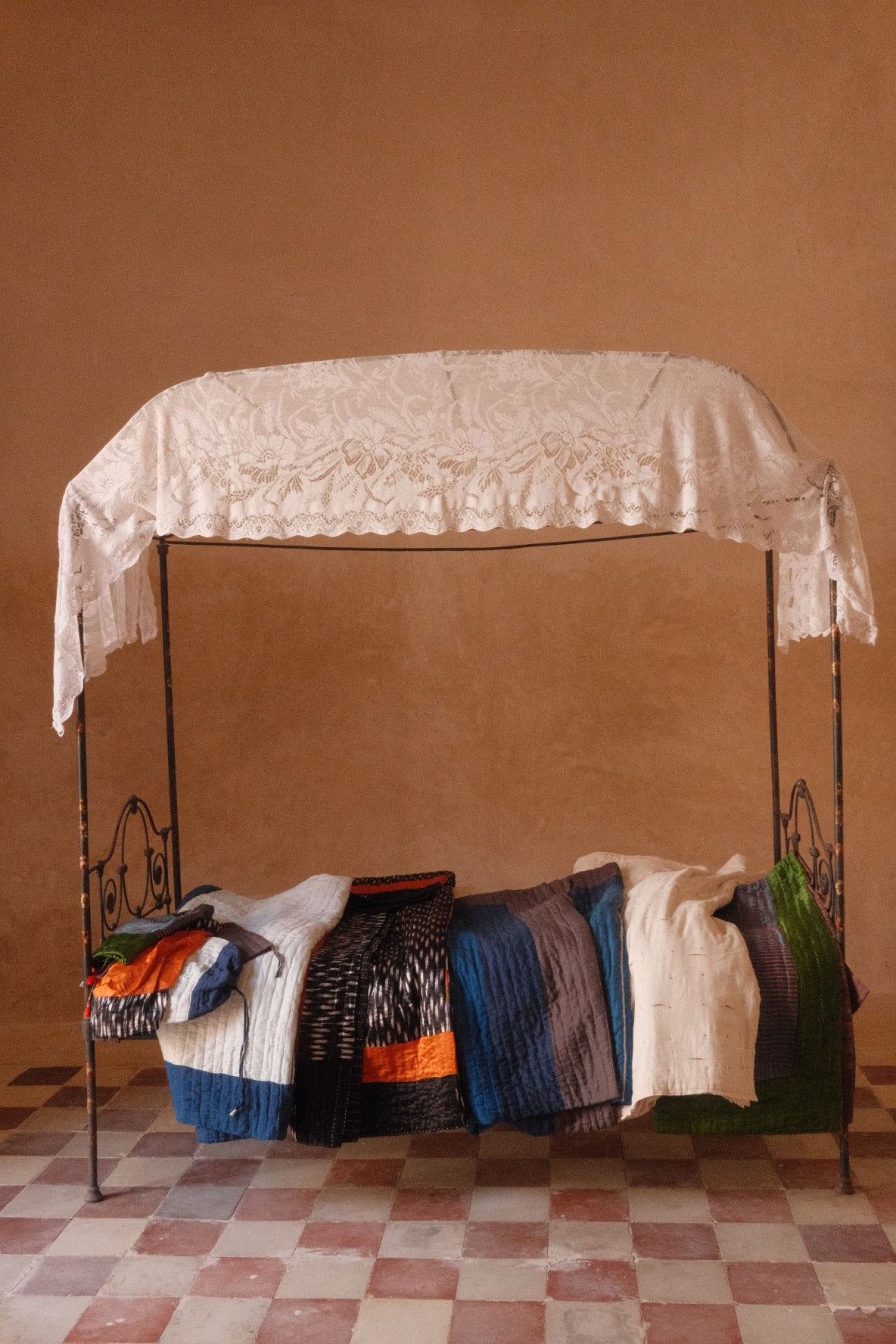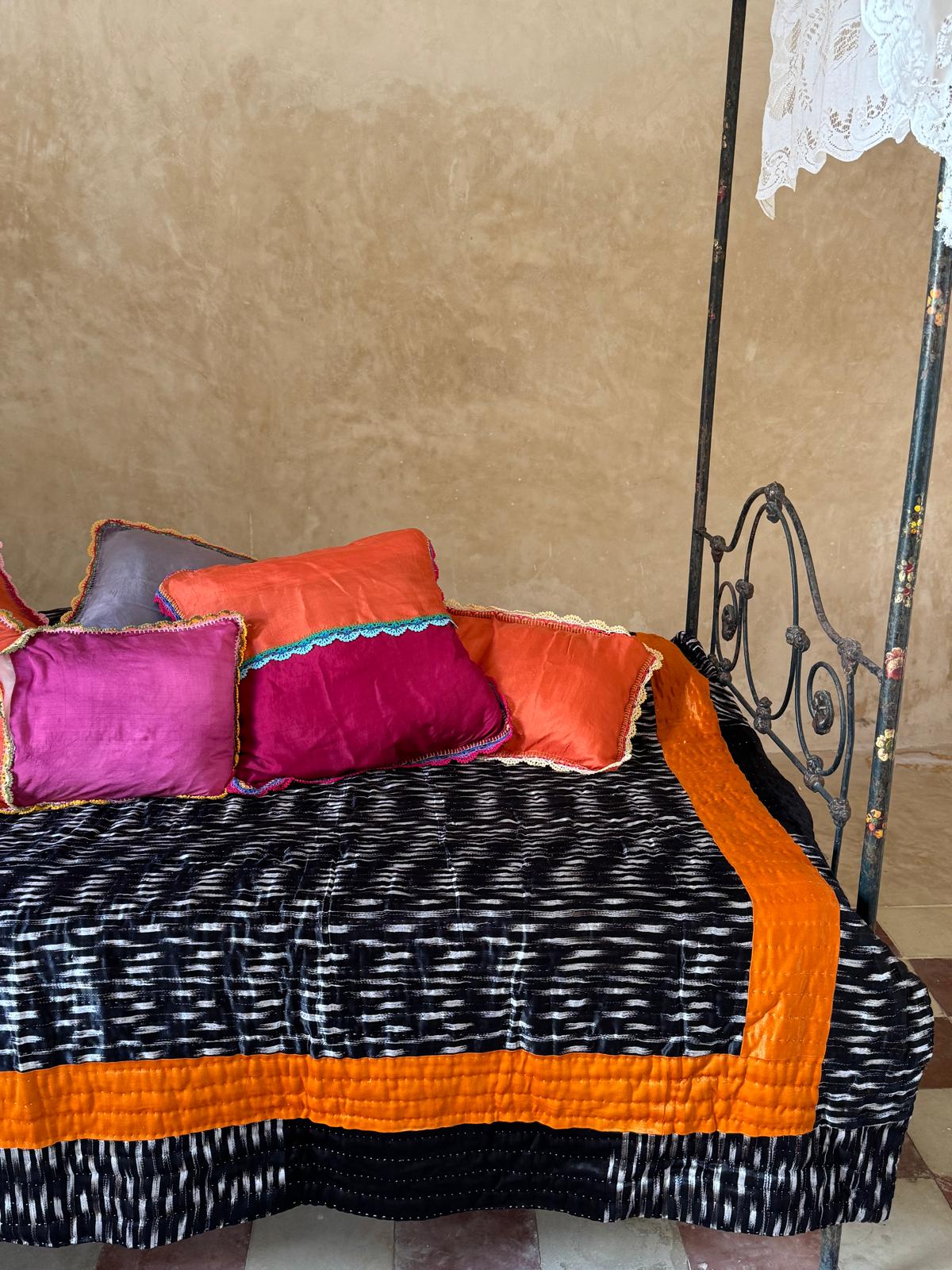 Aurelia is part of Supernaturae’s home line. One of a kind quilt made from Ikat Mashru: a blend of silk and cotton with a satin finish.
