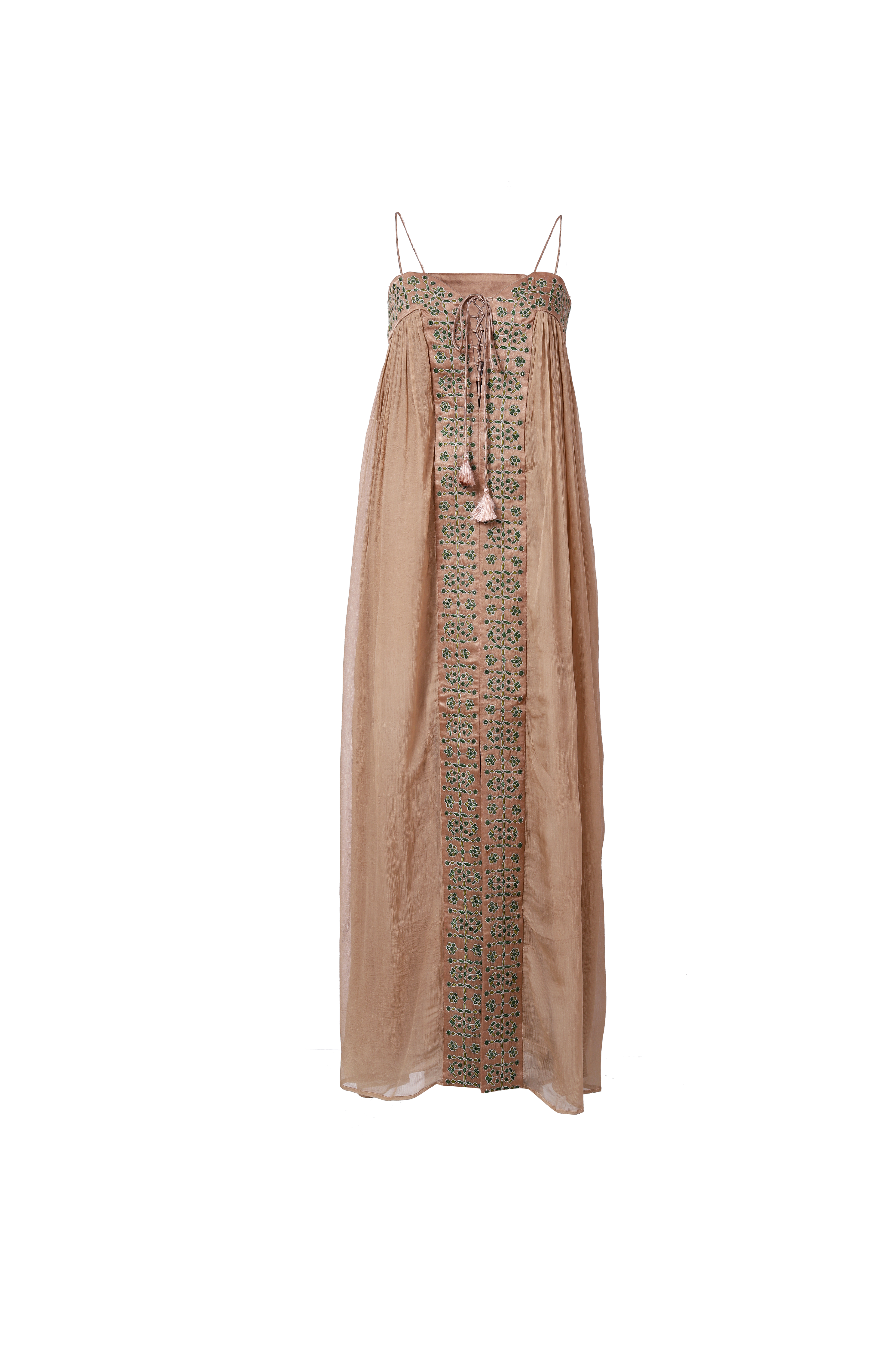 Adorned with delicate embroidery cascading from the bust tie, our Flor dress is the perfect luxury resortwear for the vibrant days of summer.