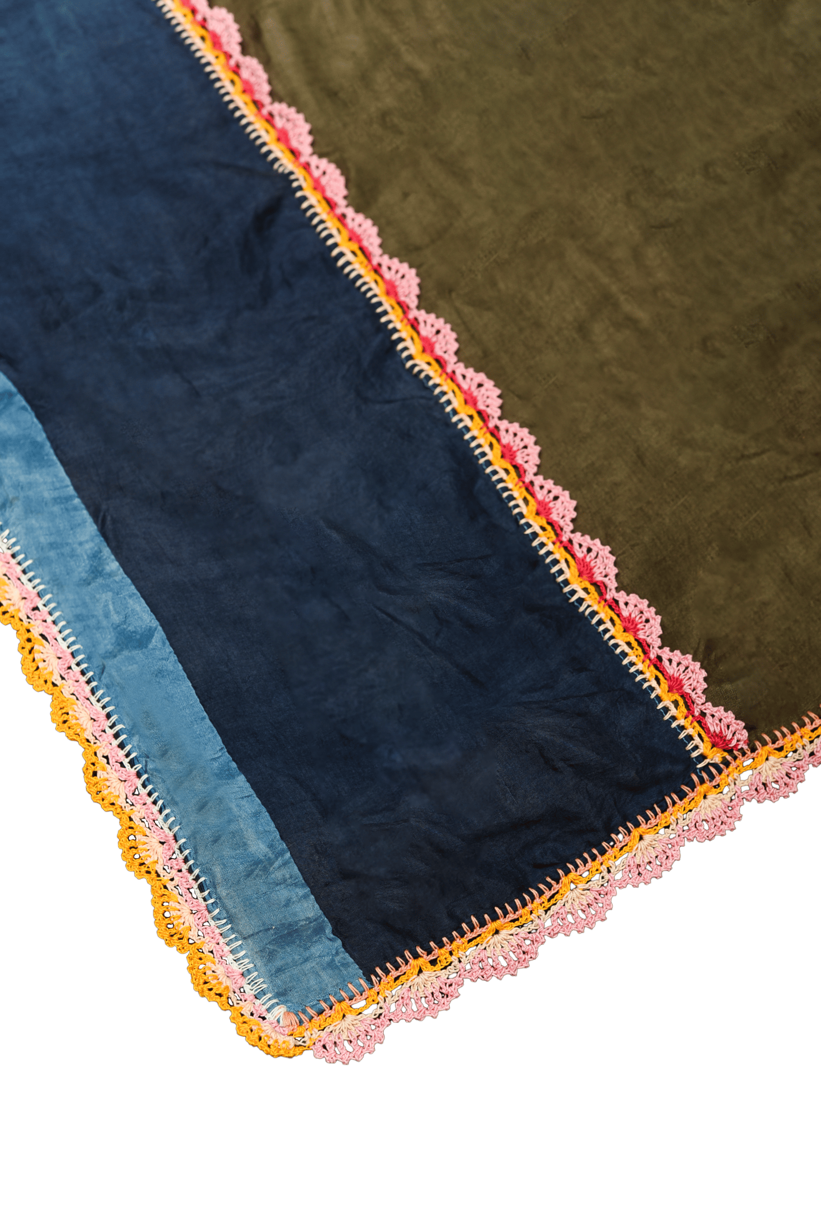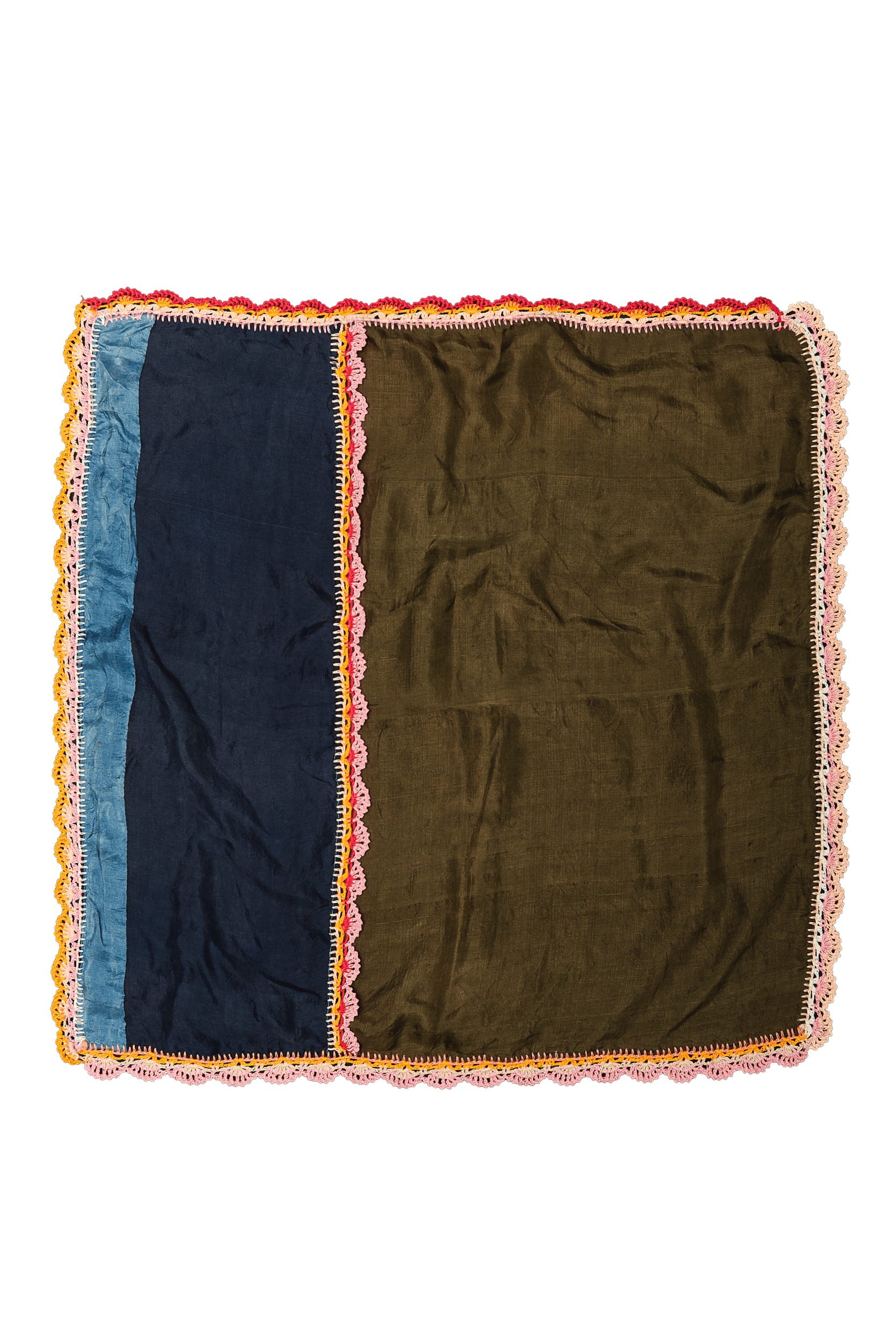 Handwoven silk originates from Murshidabad, India, reflecting our commitment to sustainability. The silk is dyed with a Zapotec community in Oaxaca, Mexico, using four locally sourced plants – Pericon, Añil, Grana Cochinilla, and Palo de Brasil. Additionally, the mountain water from Sierra Norte enhances the colors, making them incredibly crisp and clear.