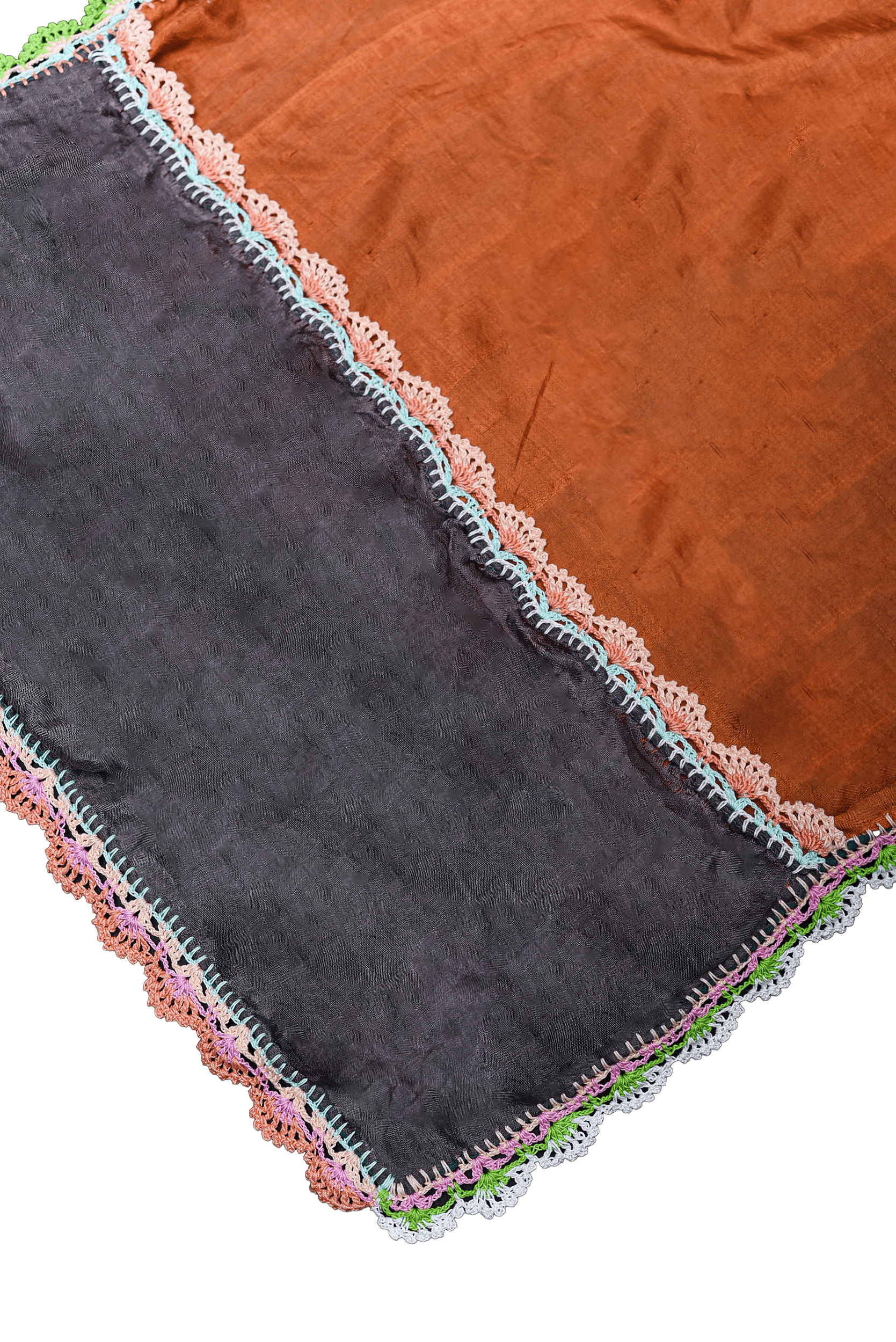 Handwoven silk originates from Murshidabad, India, reflecting our commitment to sustainability. The silk is dyed with a Zapotec community in Oaxaca, Mexico, using four locally sourced plants – Pericon, Añil, Grana Cochinilla, and Palo de Brasil. Additionally, the mountain water from Sierra Norte enhances the colors, making them incredibly crisp and clear.