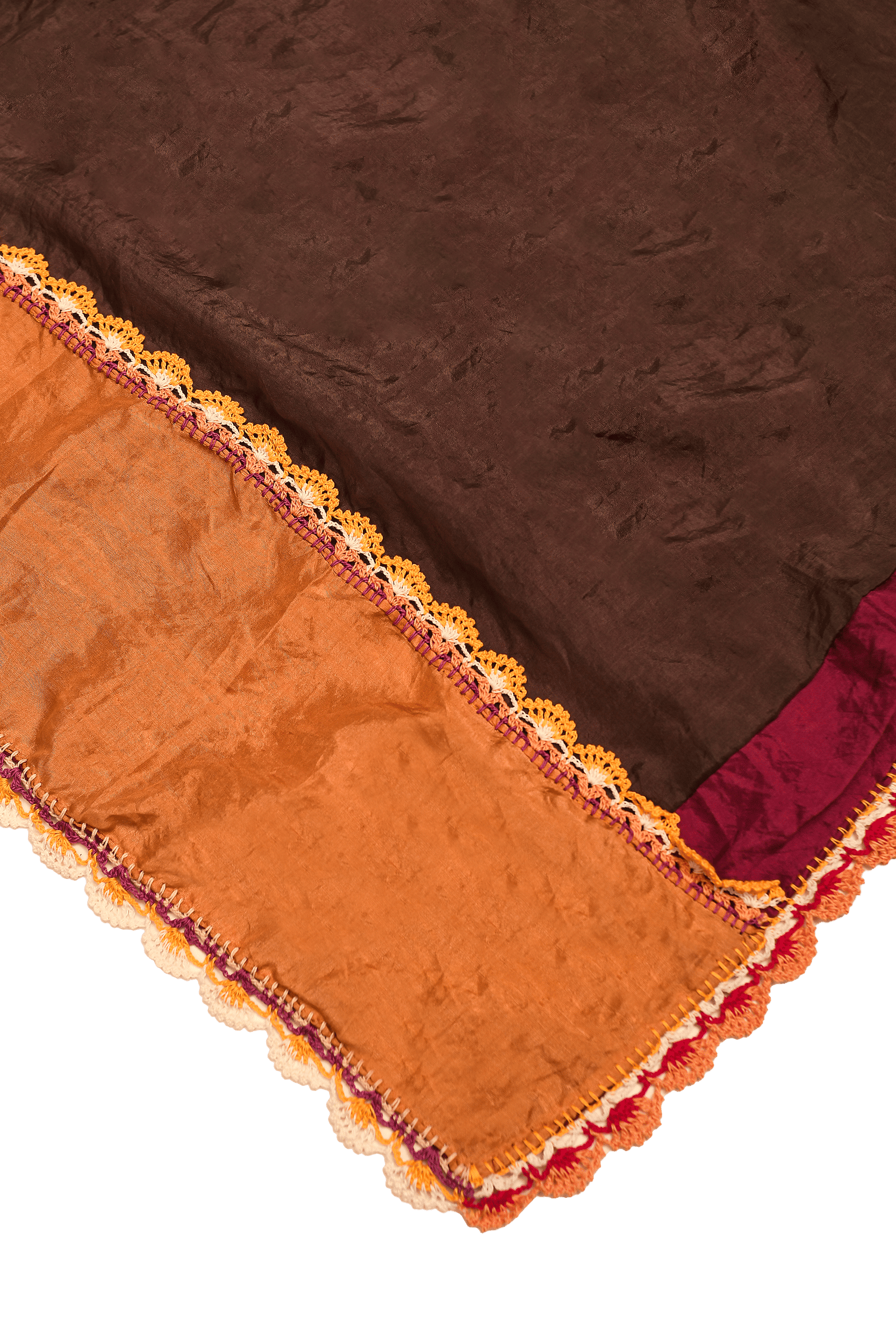 Handwoven silk originates from Murshidabad, India, reflecting our commitment to sustainability. The silk is dyed with a Zapotec community in Oaxaca, Mexico, using four locally sourced plants – Pericon, Añil, Grana Cochinilla, and Palo de Brasil. Additionally, the mountain water from Sierra Norte enhances the colors, making them incredibly crisp and clear.