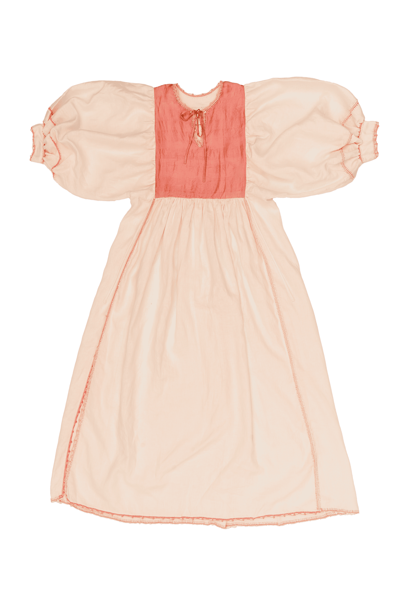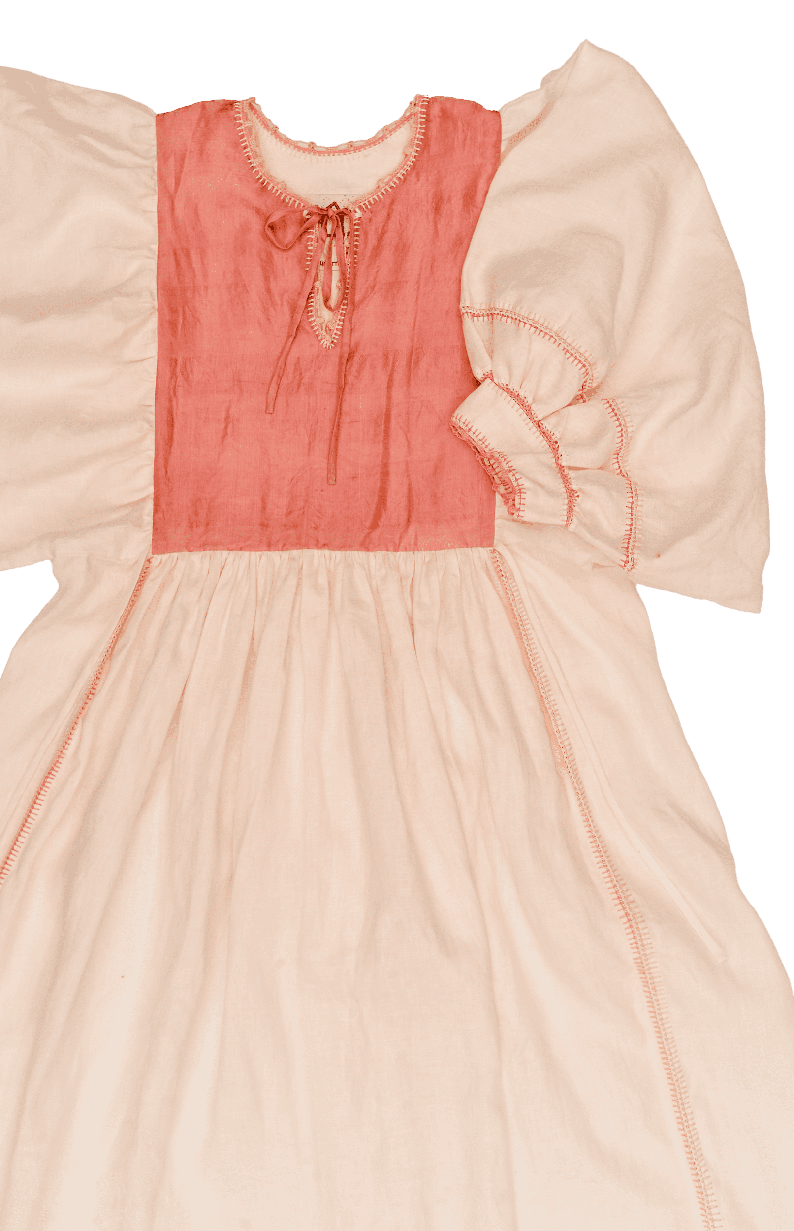 Thoughtfully designed as one size fits all, with adjustable ties accommodating sizes EU 34 to EU 44 and varying lengths. This particular dress has a wider than normal panel, allowing for larger bust sizes.