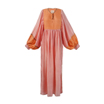Introducing our Serafina dress, inspired by 1970s kaftans, ideal as luxury resort wear. Made from handwoven silk for a delicate and light feel to the skin. Developed over a year in collaboration with artisan groups in Oaxaca, our production process honors natural cycles, with silk woven, naturally dyed, and adorned with delicate crochet.