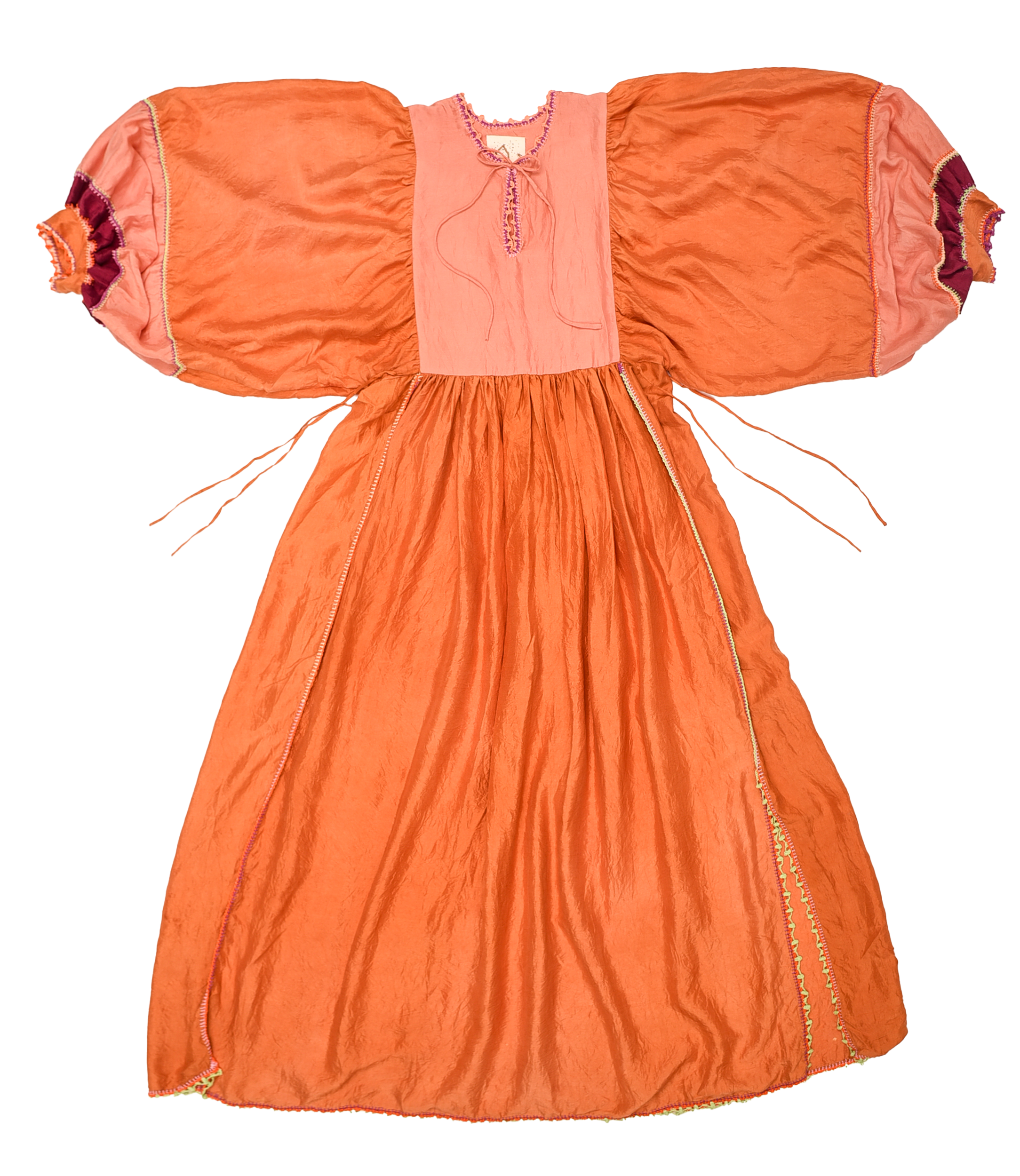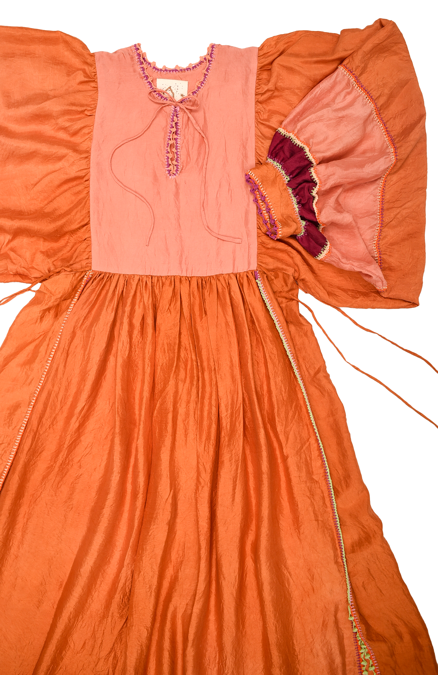 Introducing our Serafina dress, inspired by 1970s kaftans, ideal as luxury resort wear. Made from handwoven silk for a delicate and light feel to the skin. Developed over a year in collaboration with artisan groups in Oaxaca, our production process honors natural cycles, with silk woven, naturally dyed, and adorned with delicate crochet.