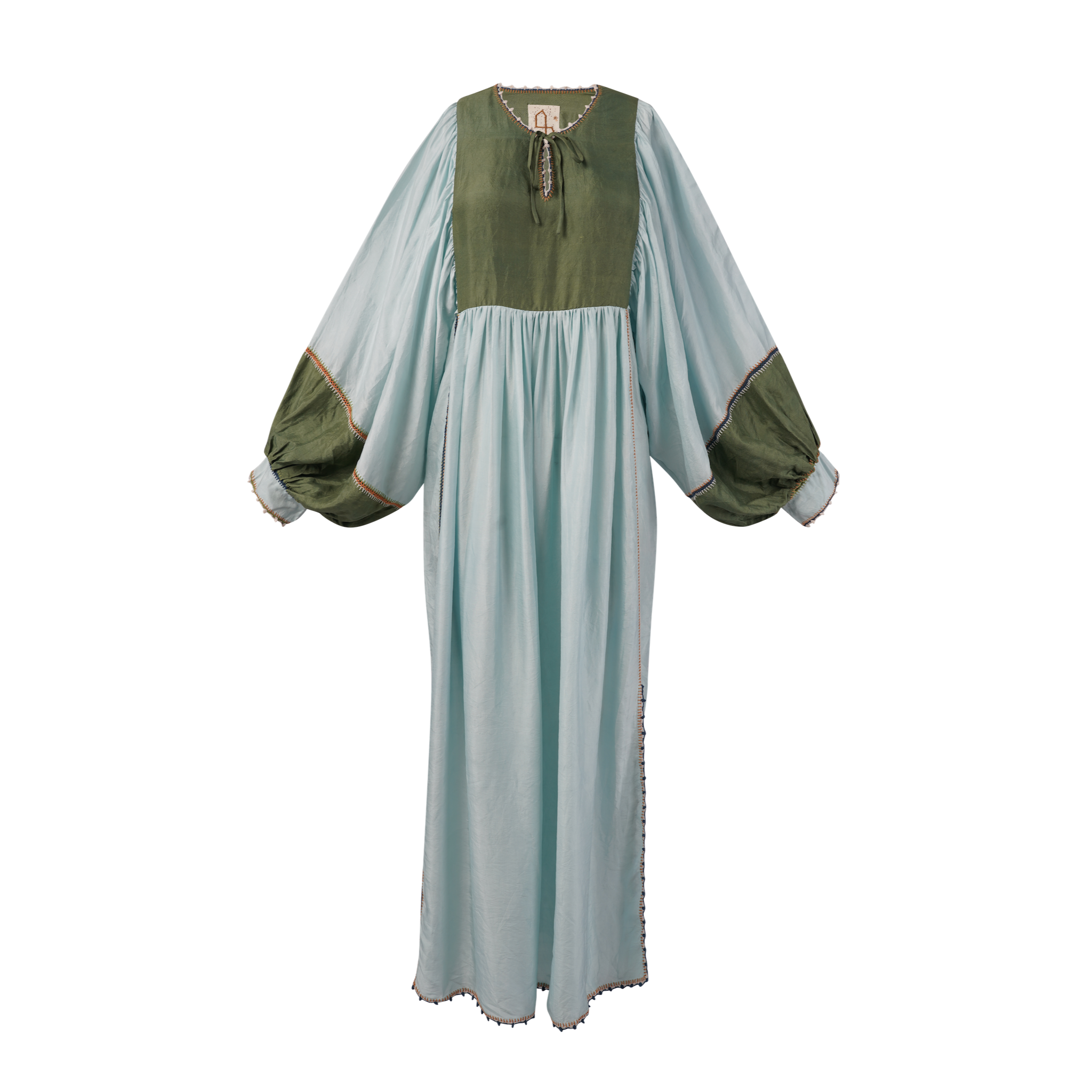 Introducing our Serafina dress, inspired by 1970s kaftans, ideal as luxury resort wear. Made from handwoven silk for a delicate and light feel to the skin. Developed over a year in collaboration with artisan groups in Oaxaca, our production process honors natural cycles, with silk woven, naturally dyed, and adorned with delicate crochet.
