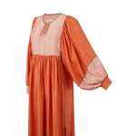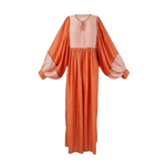 Introducing our Serafina dress, inspired by 1970s kaftans, ideal as luxury resort wear. Made from handwoven silk for a delicate and light feel to the skin. Developed over a year in collaboration with artisan groups in Oaxaca, our production process honors natural cycles, with silk woven, naturally dyed, and adorned with delicate crochet.