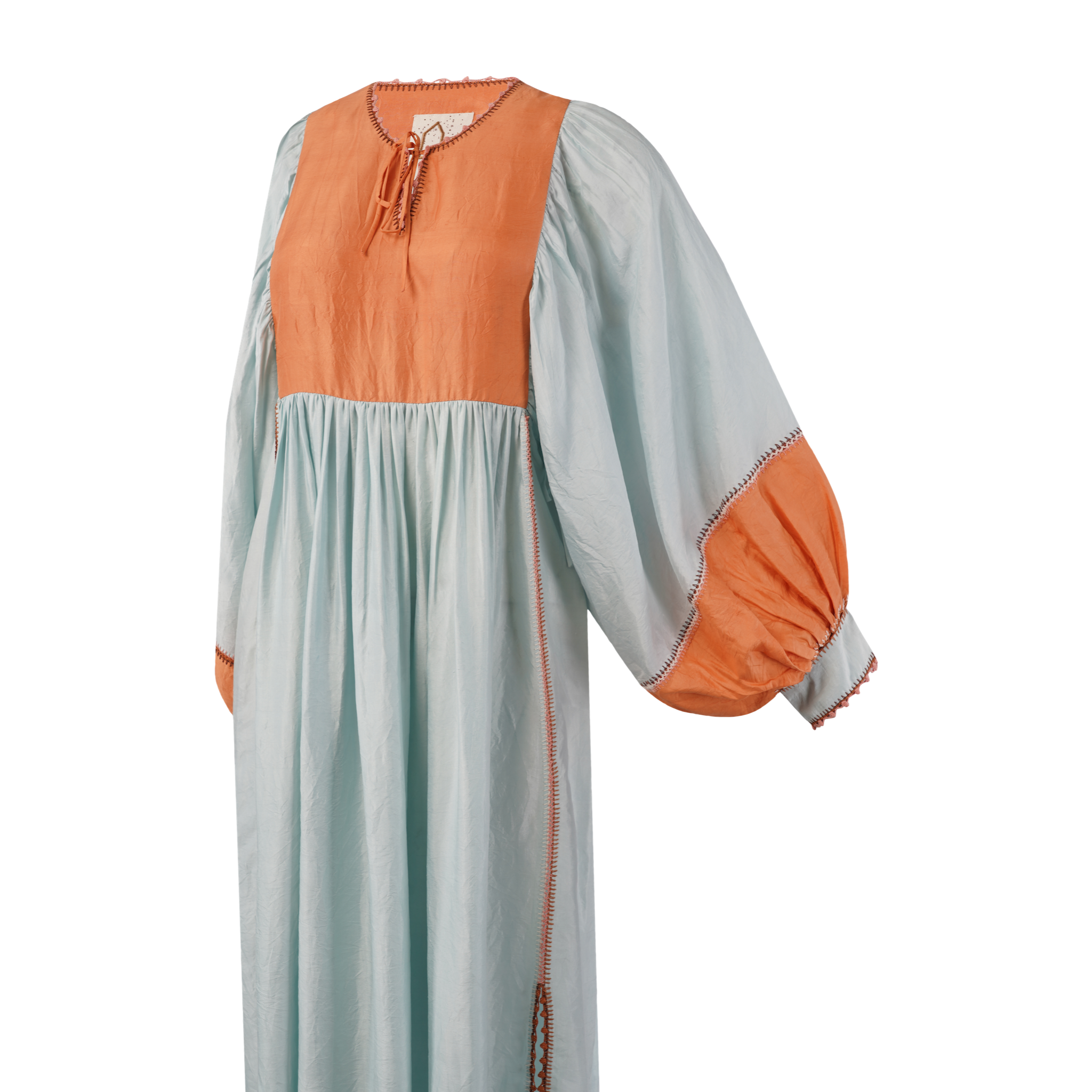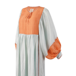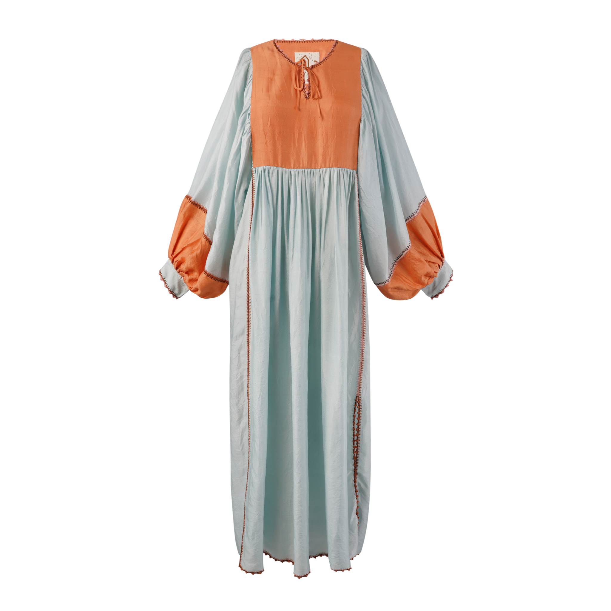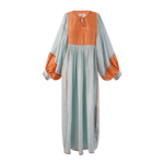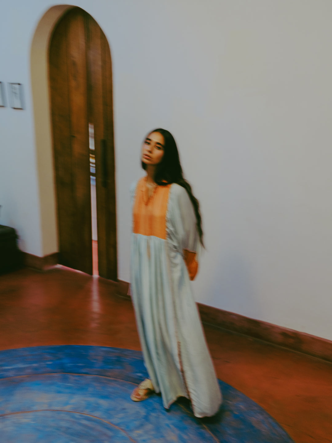 Introducing our Serafina dress, inspired by 1970s kaftans, ideal as luxury resort wear. Made from handwoven silk for a delicate and light feel to the skin. Developed over a year in collaboration with artisan groups in Oaxaca, our production process honors natural cycles, with silk woven, naturally dyed, and adorned with delicate crochet.