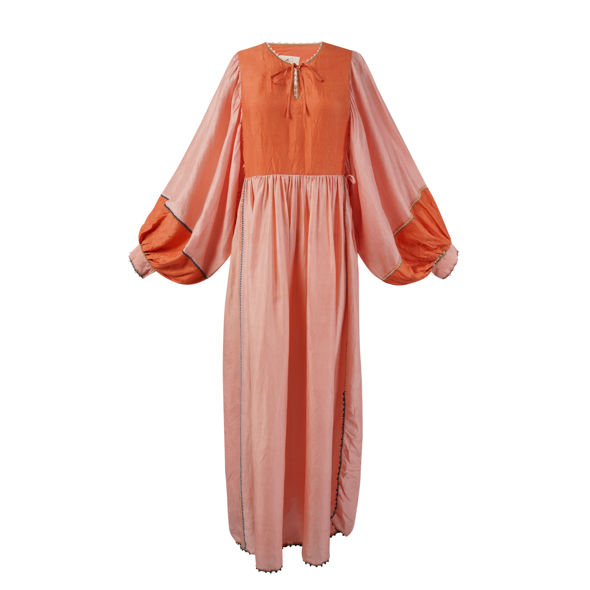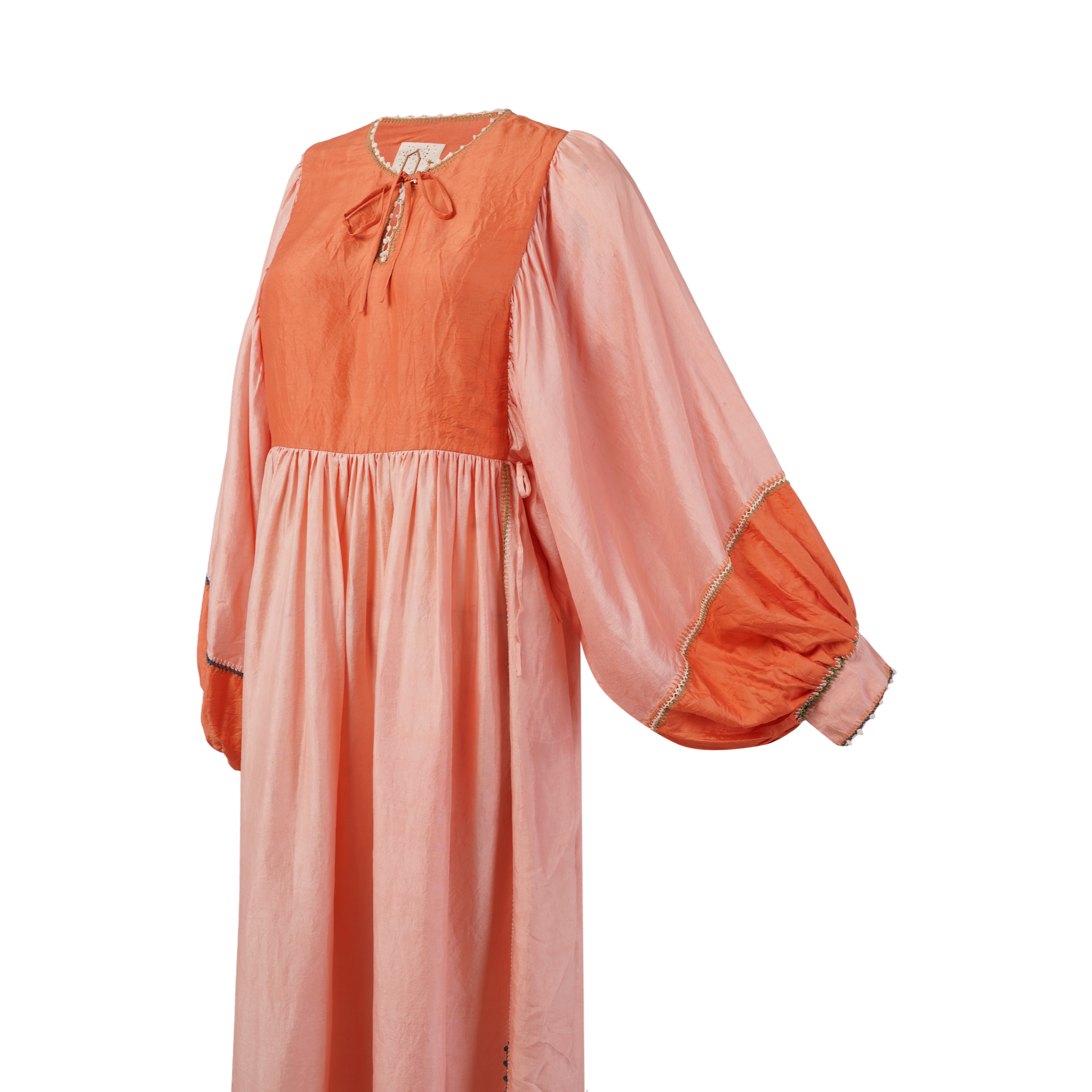 Introducing our Serafina dress, inspired by 1970s kaftans, ideal as luxury resort wear. Made from handwoven silk for a delicate and light feel to the skin. Developed over a year in collaboration with artisan groups in Oaxaca, our production process honors natural cycles, with silk woven, naturally dyed, and adorned with delicate crochet.