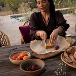 Handwoven silk originates from Murshidabad, India, reflecting our commitment to sustainability. The silk is dyed with a Zapotec community in Oaxaca, Mexico, using four locally sourced plants – Pericon, Añil, Grana Cochinilla, and Palo de Brasil. Additionally, the mountain water from Sierra Norte enhances the colors, making them incredibly crisp and clear.