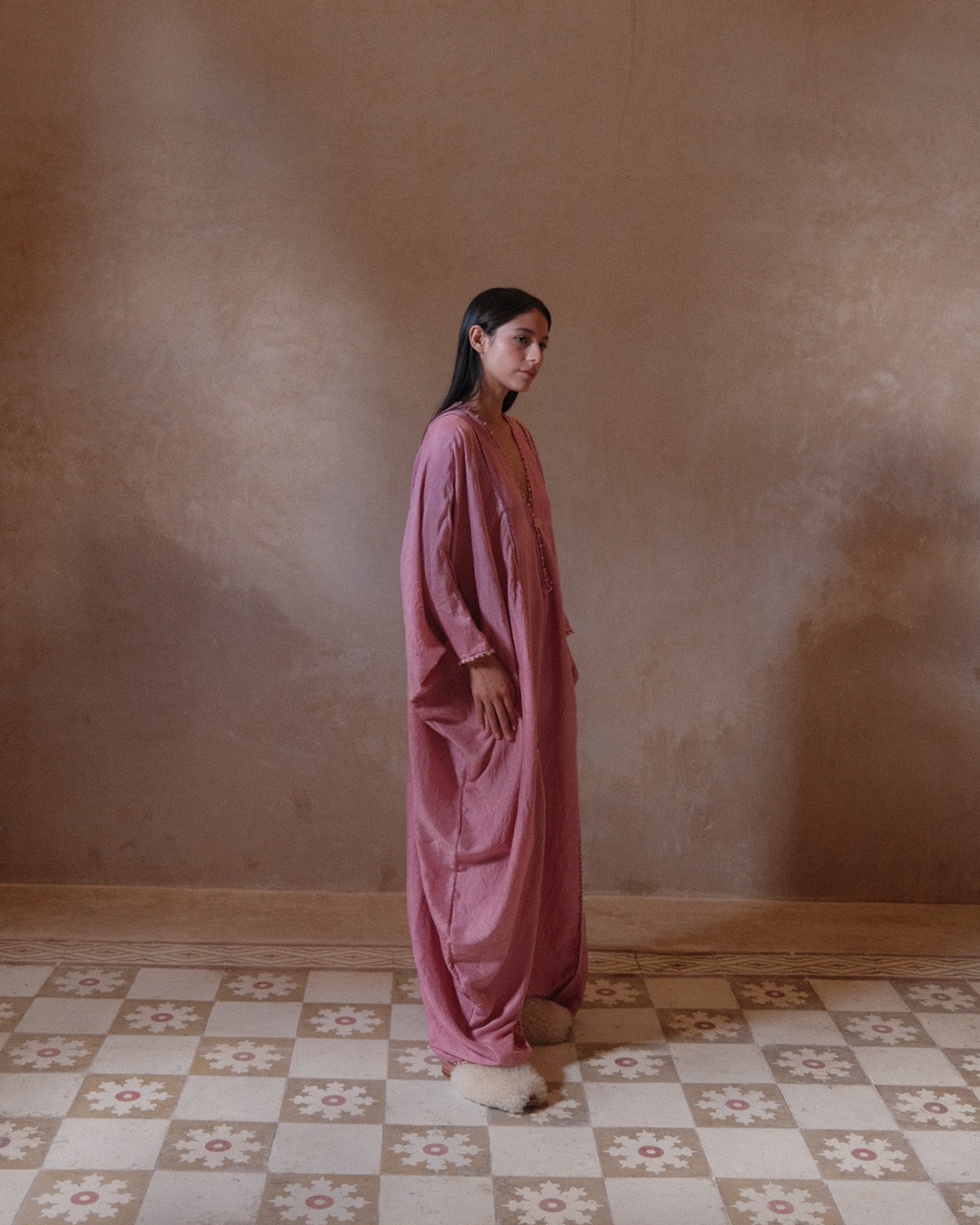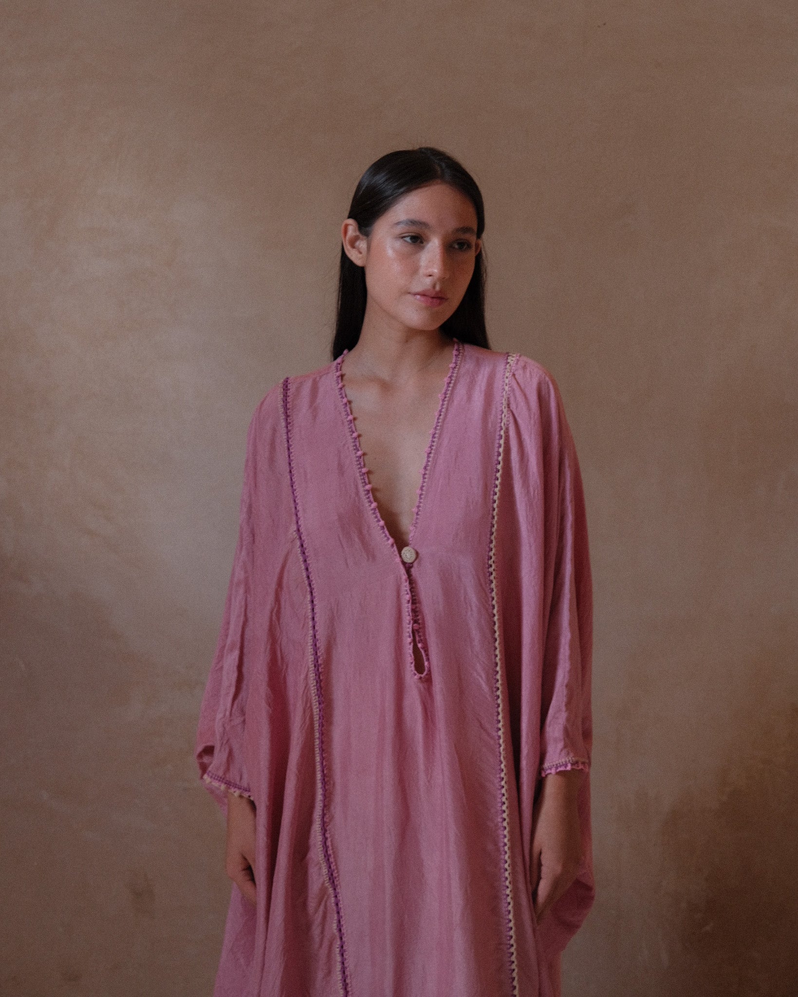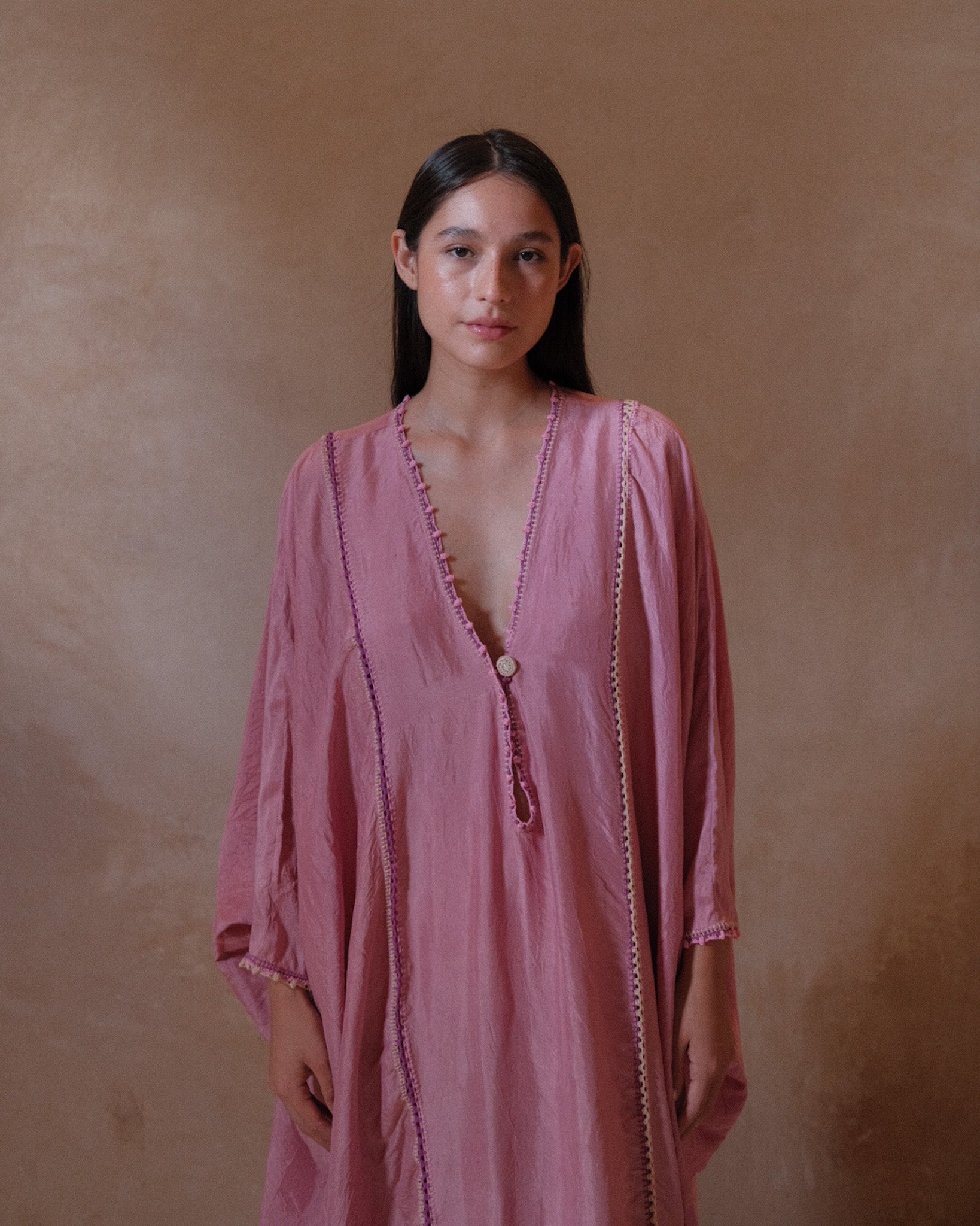 Thea is made from handwoven silk—an ancient technique still practiced in Murshidabad, India.