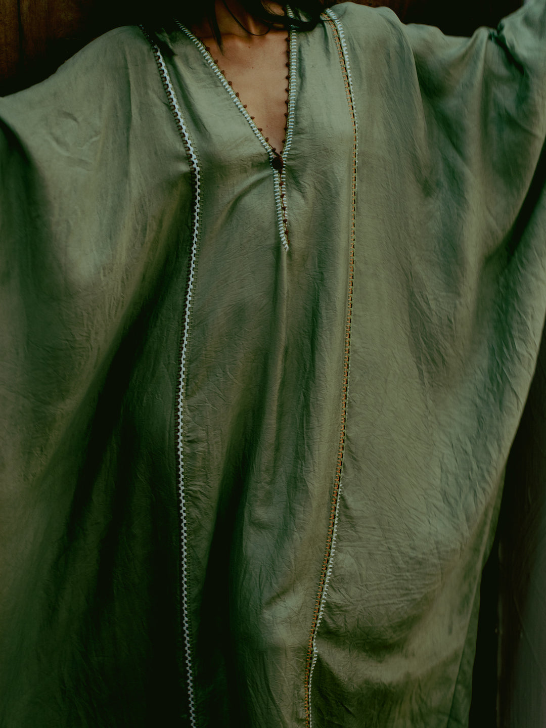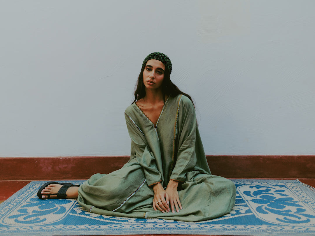 Thea is made from handwoven silk—an ancient technique still practiced in Murshidabad, India.